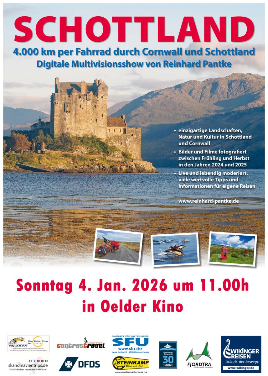 2024 und 2025 radelte der Braunschweiger Reisejournalist fast 4.000 km per Fahrrad zwischen Land's End in Cornwall und den skandinavisch geprägten Shetlandinseln im hohen Norden Schottlands. Im ersten Drittel werden Bilder und Filme aus Cornwall und der südenglischen Küste gezeigt. Ein besonderer Höhepunkt sind die mediterran anmutenden Isles of Scilly, die, südwestlich der englischen Küste mitten im Meer gelegen, mit üppiger Vegetation und fantastischen Stränden begeistern. Danach geht es hinauf nach Schottland, wo das Hochland und besonders die Inselwelten der Hebriden, Orkney- und Shetlandinseln jeden mit ihren vielfältigen Landschaften begeistern werden. Natürlich dürfen z.B. die Highland Games, Einblicke in die liebenswerten Eigenarten der Schotten und Eindrücke der einzigartigen Hauptstadt Edinburgh nicht fehlen.